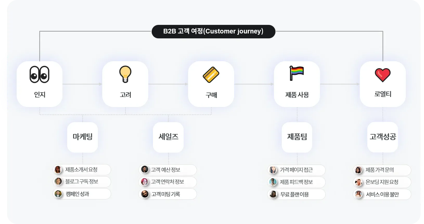 B2B 고객 여정과 개별팀에서 수집하는 고객 정보
